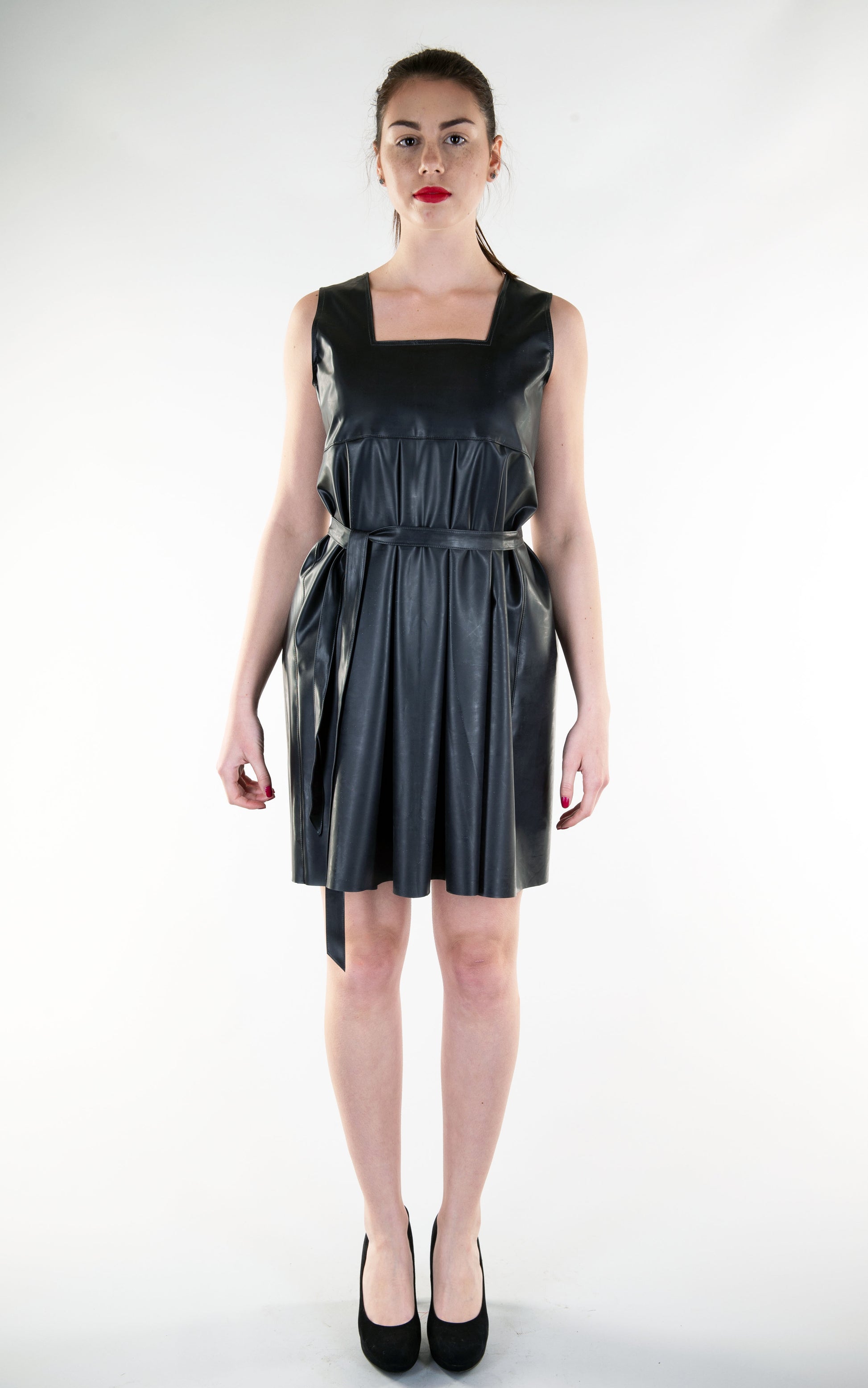 A GARMENT STYLED AFTER A TRADITIONAL GYM TUNIC, MADE FROM LATEX 0.40mm WITH TIE BELT. ALL SEAM SEWN.